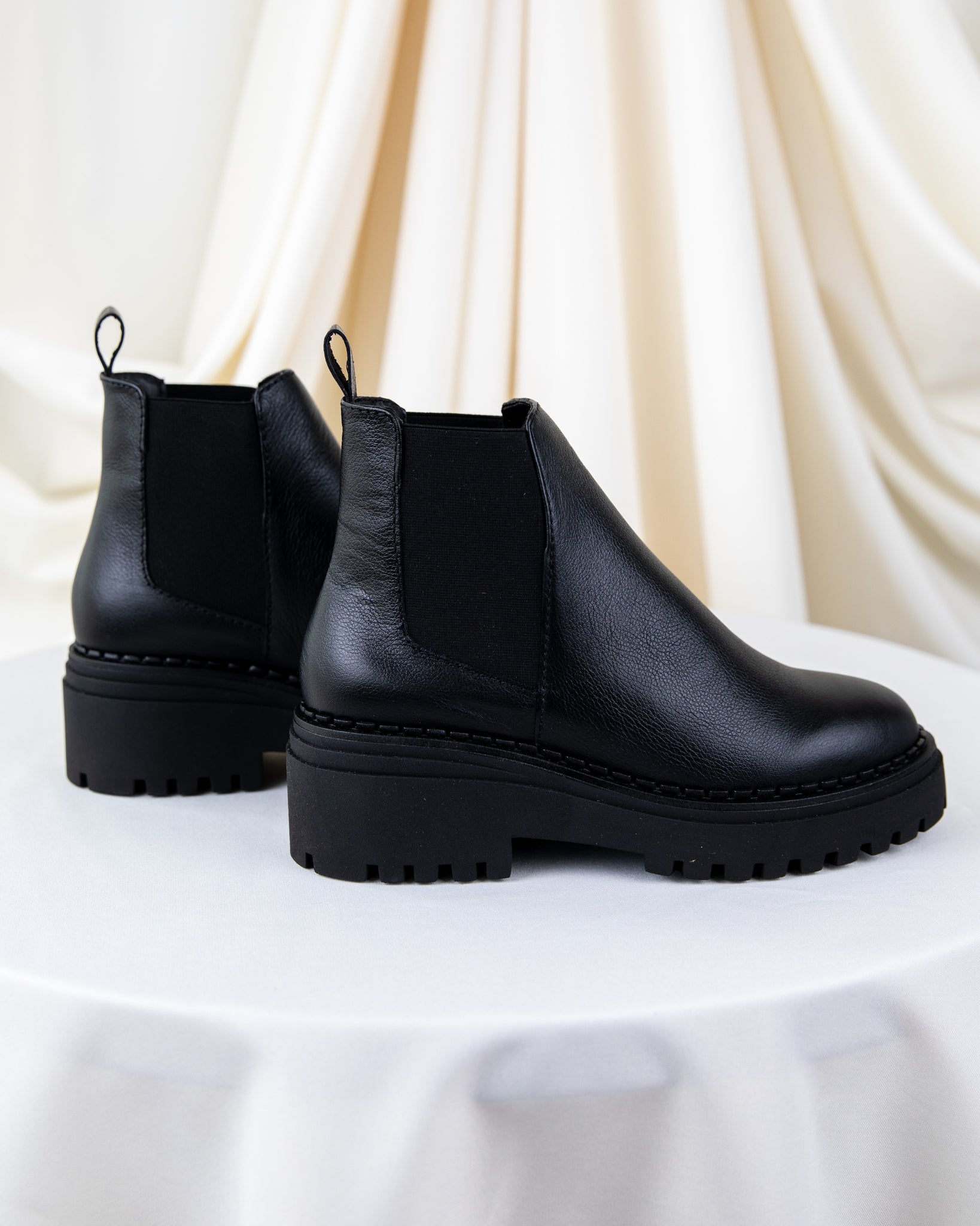 Botin de piel, color negro. Elastico en laterales. Suela ultra ligera, 5cm de altura.